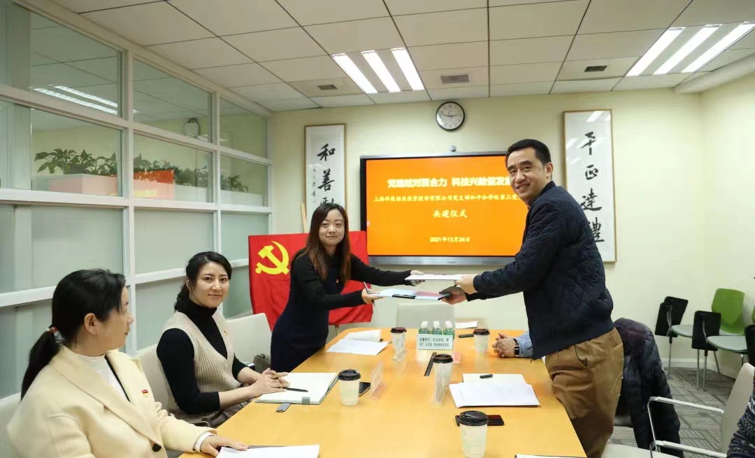 2021年12月24日,星空官方版网站登录入口-星空(中国)党支部与平和教育集团第三党支部举行主题为“党建结对聚合力,科技兴教促发展”的结对共建仪式。共话科教合作新前景。